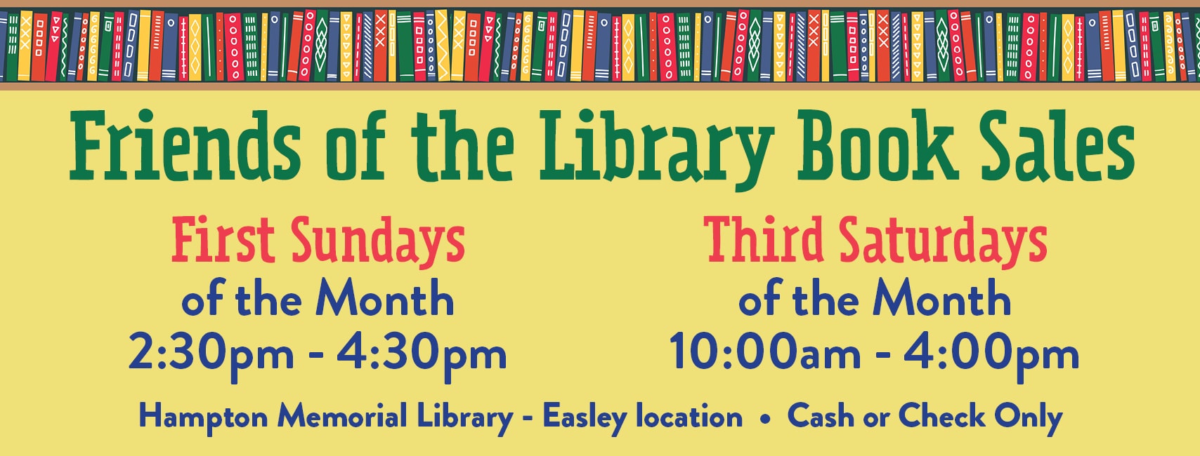 All libraries will be closed Friday, April 3rd – Sunday, April 5th. The Village Branch Library in Pickens will be closed Saturday, April 25th.